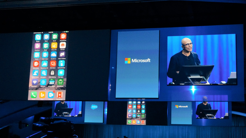 Et helt nyt Microsoft: Satya Nadella står på scenen hos Salesforce og præsenterer iOS-apps
