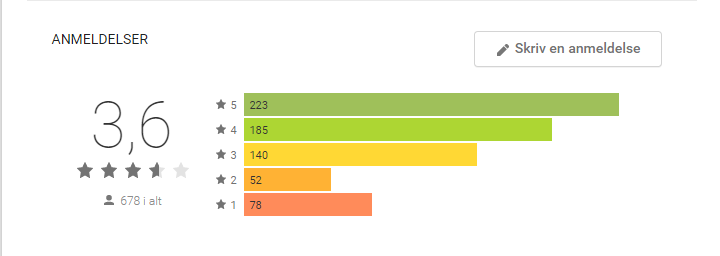 Samlet set ligger bedømmelsen på 3,6 ud fra 678 forskellige personers mening.