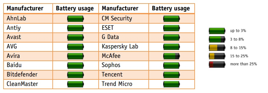 Testen gør desuden op med myten om, at sikkerhedssoftware sluger batteriet. Det er ikke tilfældet, hvilket du kan se på grafikken.
