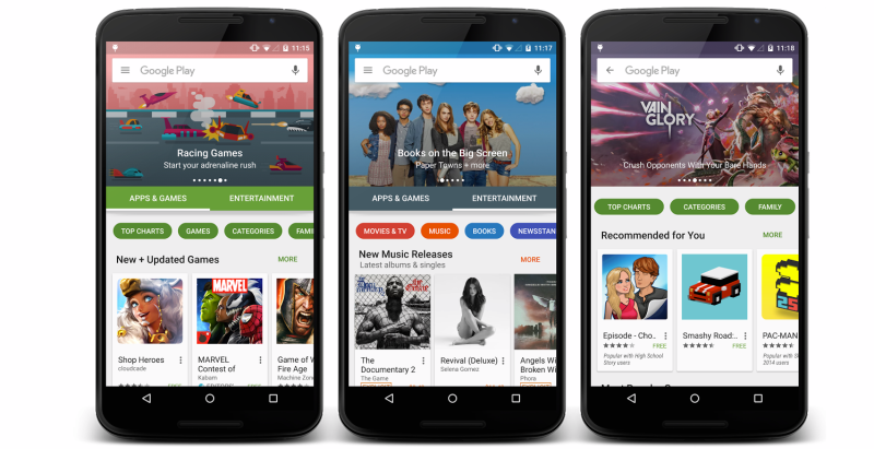 Play Store får også en større lighed med Googles andre apps, som har fået implementeret "Material Design". Material Design er et designsprog, hvor animationer skal være levende.