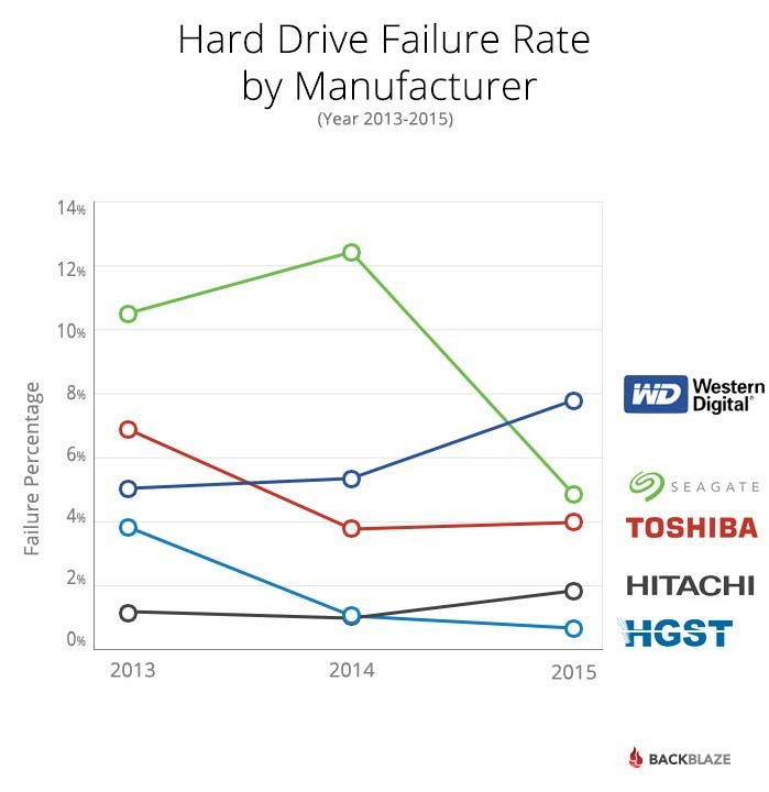 Både i 2013 og 2014 lå producenten Seagate i toppen over flest fejl. Men i 2015 er antallet af fejl styrtdykket.