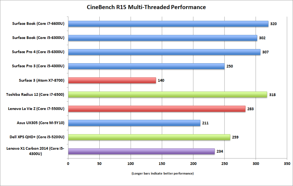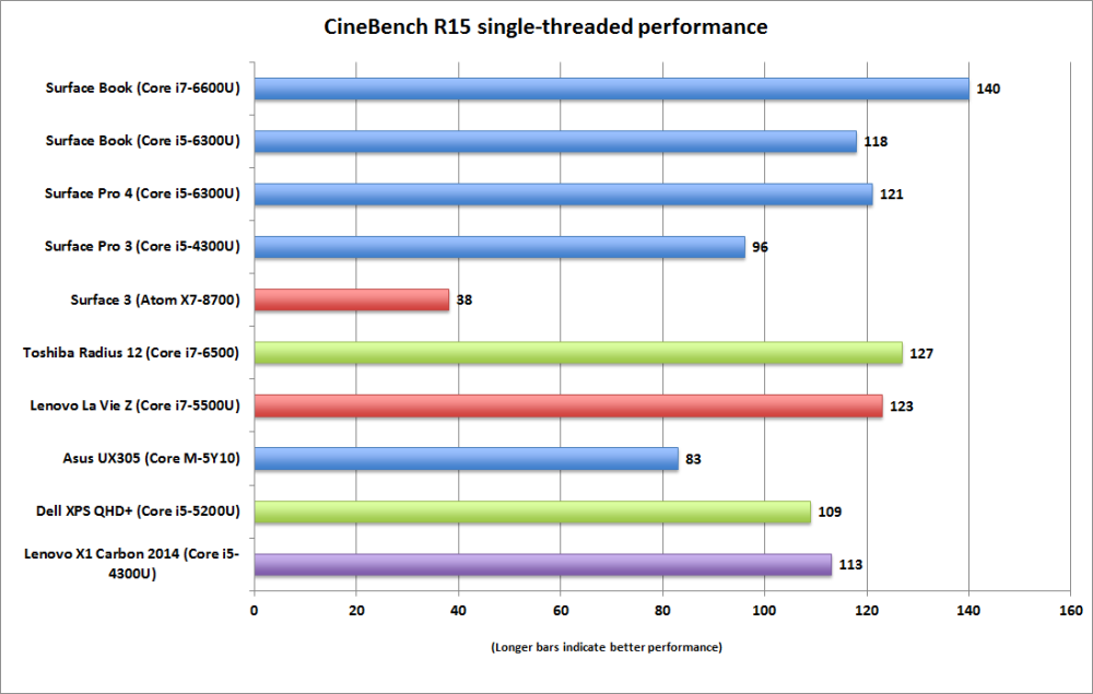 Der er ingen 13-tommer traditionel Ultrabook, som kan slå Surface Books dedikerede grafikchip, og Surface books CPU giver så meget kraft, som den kan i sin utrolig tynde skal.