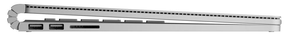På Surface Book finder du en række nødvendige porte. To USB 3.0 type A (de "klassiske" USB-hunstik), en minidisplay-port, og en SD-kortlæser. Desuden er der en minijack-port på skærm/tablet-delen.