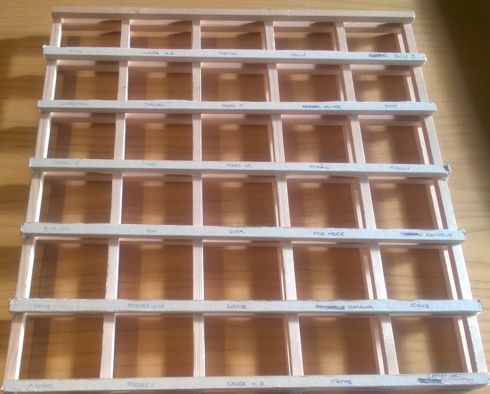 "Jeg havde altså en plan om at tage telefonerne fra mine elever som et forsøg. Derfor tog jeg i Silvan og købte en håndfuld ni-millimeter-lister. Efter et par timer havde jeg flikket en mobilholder sammen. Jeg skrev elevernes navne på, og hvis mobilen ikke blev stillet i holderen før timen, udløste det fravær. En lidt hård sanktion, men det er det våben, der er."