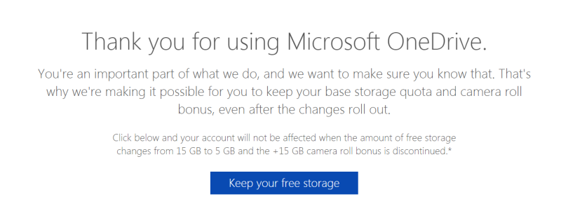 Du kan dog kun beholde den ekstra lagerplads, hvis selv går til en speciel webside, og klikker på "Keep your free storage".