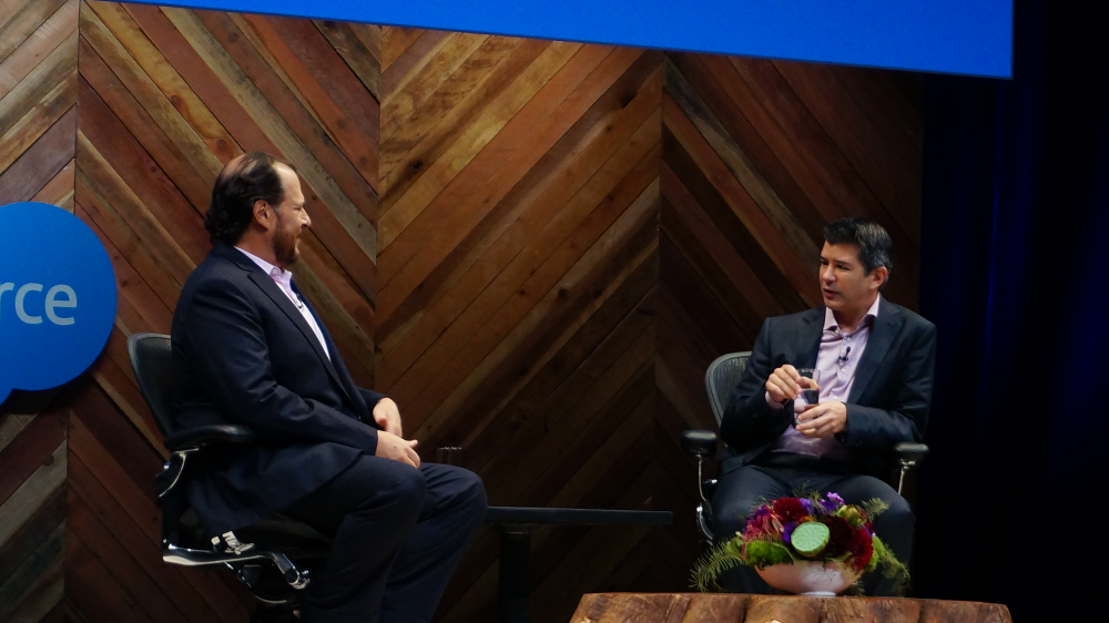 Her var han inviteret til en såkaldt "fireside chat" med Salesforce-stifteren Marc Benioff. En fireside-chat skal forsøge at genskabe den afslappede stemning, der opstår foran pejsen en sen aftentime. Det var således lagt op til en hyggesnak, ikke et kritisk interview.