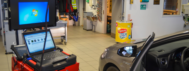 Det er ikke længere et værktøjsbord med topnøglesæt og skruetrækkere, som i første omgang rulles frem, når din bil er på værksted.