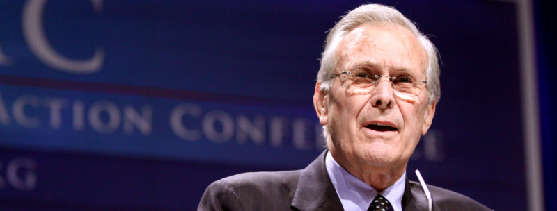 Donald Rumsfeld er dog formodentligt bedst kendt for sin tid som magtfuld forsvarsminister under præsident George W. Bush, hvor han i perioden fra 2001 til 2006 blandt andet var ansvarlig for planlægningen af invasionerne i Afghanistan og Irak.