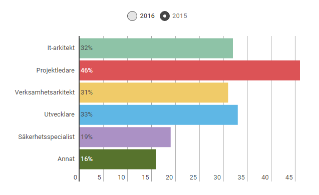 Interessen for projektledere er dog dalet lidt fra 46 procent i 2015 til 39 procent i 2016. Interessen for virksomheds-arkitekter er steget med fem procentpoint ifølge CIO-rapporten.