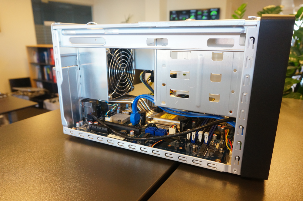 Blandt andet er der selvfølgelig ikke nær så meget plads, som du har i et større kabinet. Selvom der er plads til 4 3,5" harddiske, så er der ikke plads til for eksempel optisk drev og du har også kun adgang til én PCI-e-port.