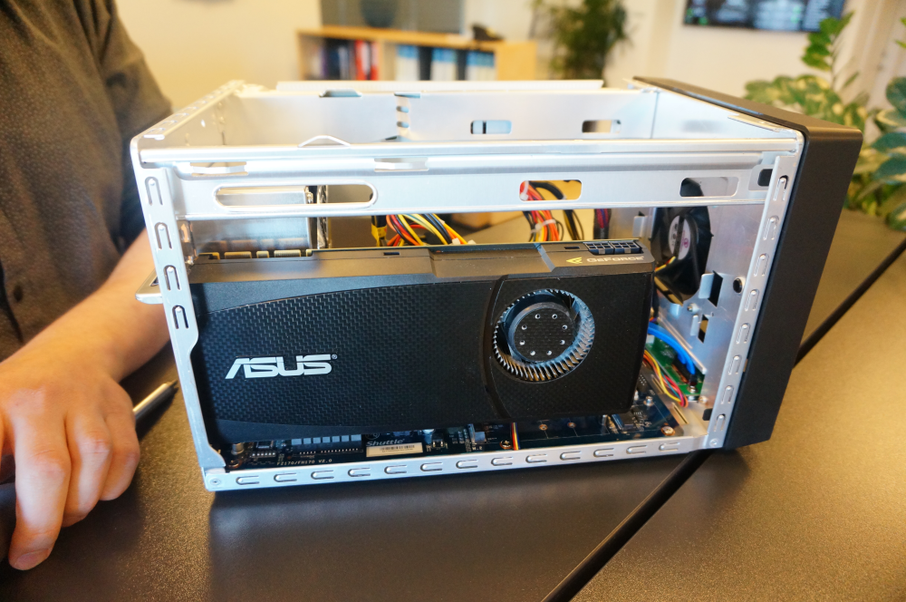 Fem minutter med at sætte RAM, harddiske og processor i og 10  minutter med at få viklet strømkablet rundt om grafikkortet, så det kan være der. Du slipper ikke helt for at kæmpe med kabler.