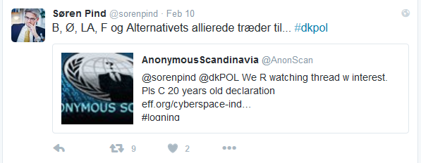 Eksempelvis har justitsministeren påstået, at Radikale Venstre, Enhedslisten, Alternativet og Socialistisk Folkeparti har indgået en alliance med Liberal Alliance og hackergruppen Anonymous.