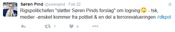 I stedet for at fremføre argumenter for sessionslogning, har Søren Pind brugt en perlerække af udtalelser til at understrege, at ønsket om sessionslogning bestemt ikke kommer fra ham selv og male kritikere som sølvpapirshatte.