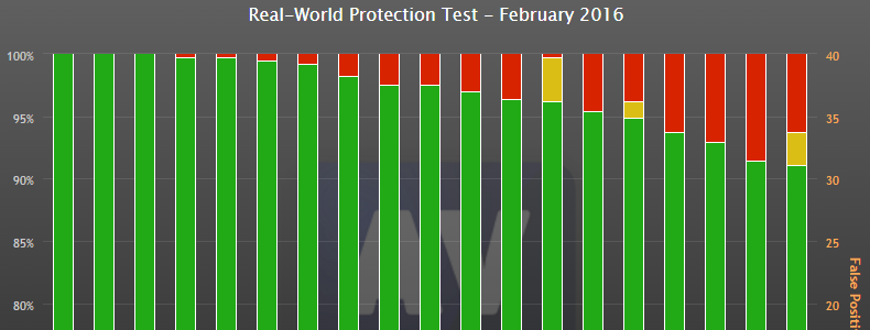 Altså en test-form, der forsøger at efterligne de sikkerhedsproblemer, man møder i hverdagen. I februar-testen er programmerne blevet kort igennem med 392 ondsindede programmer.