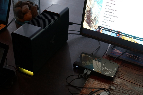 Den lille NUC blev tilsluttet en Razer Core via et Thunderbolt 3.0-stik, og så er det pludselig en gamer-computer i topklassen - alt efter hvilket grafikkort du har i en Razer Core.