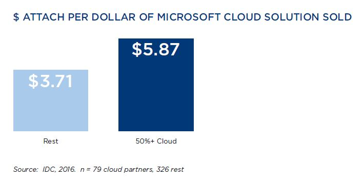 IDC's tal viser, at hver gang man sælger for en krone cloud fra Microsoft følger der yderligere 5,87 kroner med som mersalg hos forhandlerne. For de knap så cloud-begejstrede er det tal nede på 3,71 kroner.