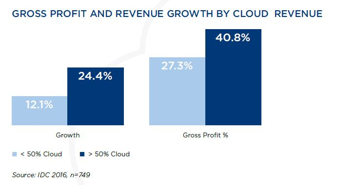 Partnere, der henter mere end halvdelen af deres omsætning fra cloud-ydelser vokser i gennemsnit dobbelt så hurtigt, som deres konkurrenter.