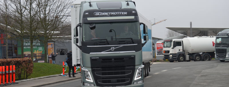 Vi mødte lastbilerne på en rasteplads i Karlslunde, og fik en forklaring på, hvordan de virker samt et kig på chaufførens digitale arbejdsplads.