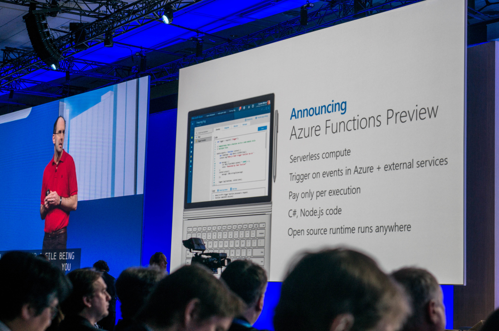 Microsofts vice president, Scott Guthrie, fremviste på Build-konferencen Azure Functions - en service, der tillader udviklere at opsætte funktioner, der aktiveres automatisk, når der sker en bestemt hændelse.