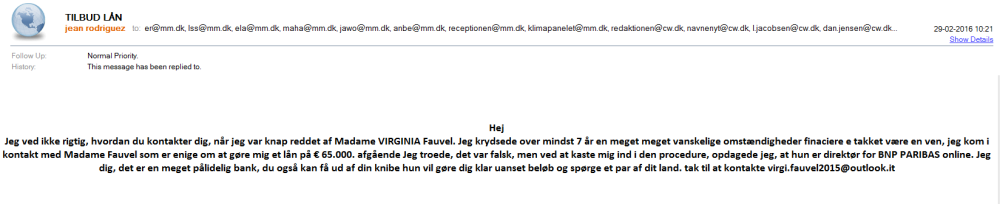 Vi oprettede også en falsk mailkonto og udgav os for at være en håbløs naiv internetbruger i pengenød.