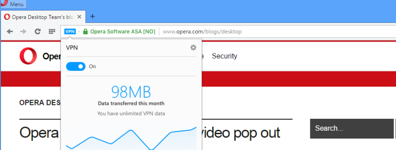 Indtil videre kan du få adgang til VPN-funktionen via udviklerrudgaven af Opera 38.