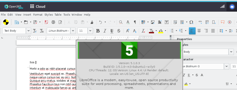 "Det er også muligt at uploade og benytte skabeloner i Open365. Stavekontrol på dansk og andre sprog kan installeres i LibreOffice, omend det er lidt besværligt. Til gengæld findes der i øjeblikket ikke en dansk brugergrænseflade."