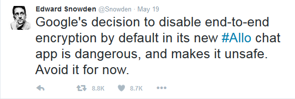 Men på trods af det høje niveau af kryptering er der murren i krogene. For brugerne af Allo skal nemlig selv slå krypteringen til, og det kommer de ikke til, mener blandt andre Edward Snowden.