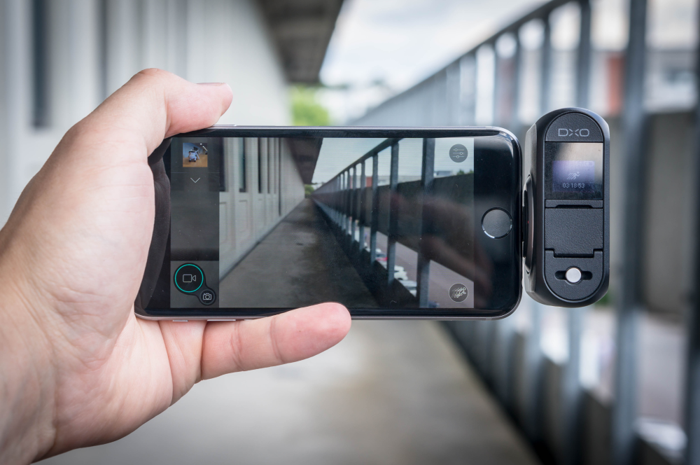 Du holder kamera og telefon, som du ville holde et gammeldags hjemmevideokamera: Med begge hænder. Gør du ikke det, er der stor chance for, at du taber enten telefon eller DxO One.