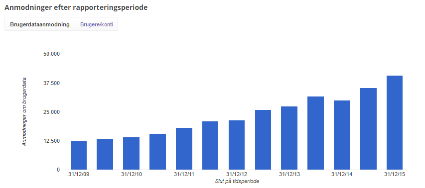 Samtidig er det en markant stigning i forhold til 2014, hvor der var 61.838 anmodninger fra myndigheder, hvilket svarer til en stigning på godt 18 procent mellem 2014 og 2015.