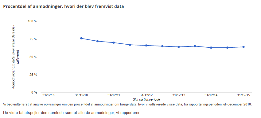 Samtidig oplyser Google, at der bliver udleveret datasæt i 64 procent af anmodningerne.