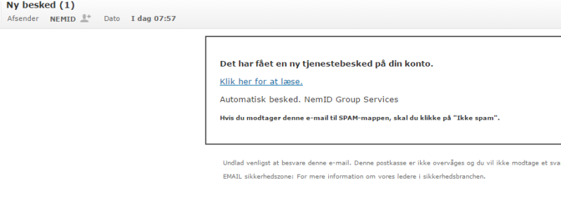 "Man skal altid undlade at indtaste data, sende informationer eller klikke på links. Vi sender ikke generelle mails indeholdende links til folk og aldrig i forbindelse med indsamling af følsomme oplysninger."