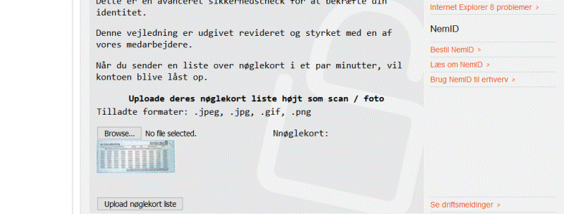 Først via en falsk webside, der til forveksling ligner et ganske almindeligt NemID-login.