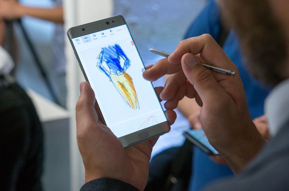 Det er den tynde pen, der trækkes ud af bunden på telefonen, der gør Note 7 unik.