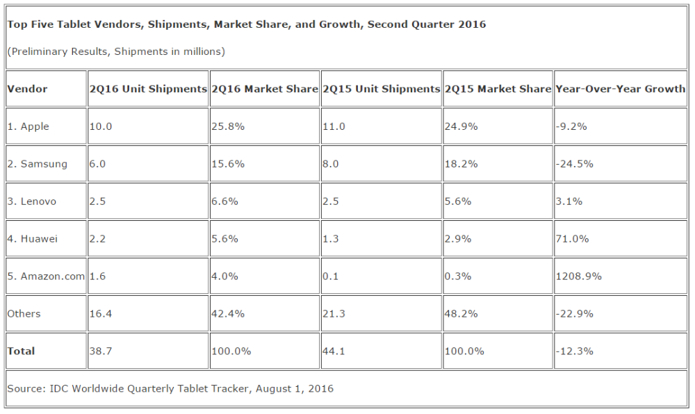 Amazon er en højdespringer i procent, men det skyldes et meget lavt antal solgte enheder i andet kvartal 2015.