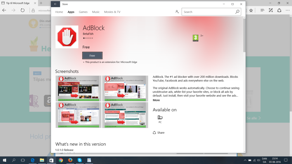 Der er stadig ikke mange extensions til rådighed, men du kan få Adblock og Adblock Plus, der skjuler bannerreklamer i Edge.
