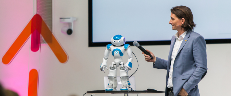 Her var folk fra Singularity University inviteret til at tale på Google-konferencen 'Digital Frontrunners' foran et par hundrede konferencedeltagere fra det danske erhvervsliv, forskningssfæren og iværksættermiljøet i Industriens Hus ved Rådhuspladsen i København.