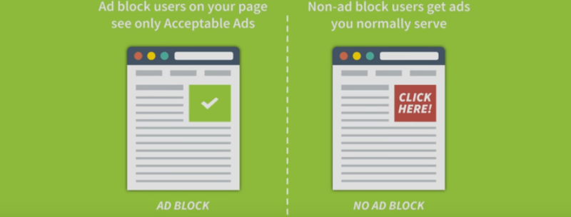 Det betyder altså, at brugere af Adblock Plus kan få vist de acceptable reklamer, som er forhåndsgodkendte af en bruger-komite, der løbende vurderer, hvad acceptable reklamer er for en størrelse.