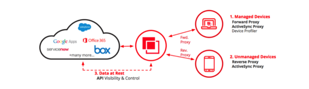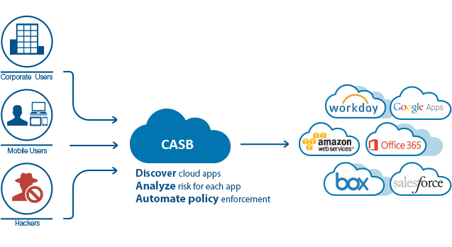 Der er tale om et sikkerhedslag eller kontrolpunkt, der placeres mellem virksomhedens brugere og skyen.