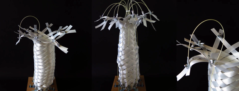De kunstige planter er bygget op omkring små mekaniske moduler, der er forbundet ved hjælp af meget lette konstruktionselementer.