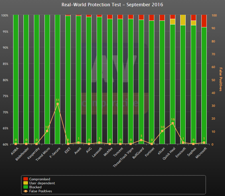 I den modsatte ende af listen havner Microsoft Securety Essentials 4,9 som rosinen i pølseenden med en sporingsprocent på 96,2