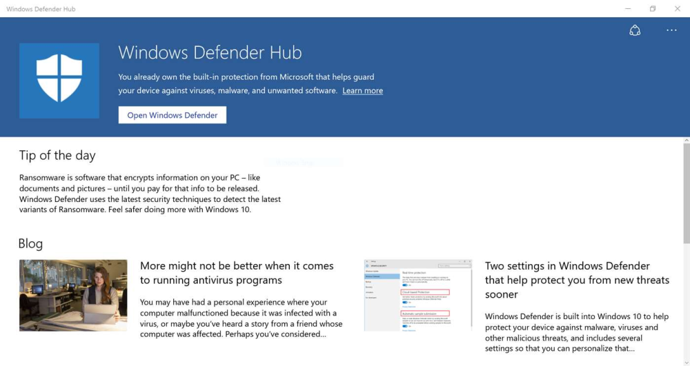 Til gengæld har Microsoft netop nu frigivet en ny app, Windows Defender Hub, til Windows 10, der formentlig ikke ligefrem får Eugene Kaspersky til at droppe sin kritik.