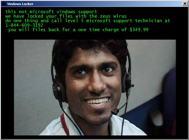 "VindowsLocker har en anden tilgang og bruger call center-operatører og den officielle Windows-supportside for at give et indtryk af legitimitet i den tech support, der gives til ofrene."