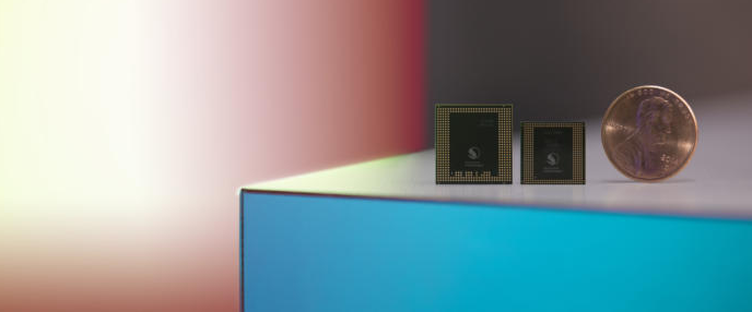 Den nye Snapdragon 835 er den mindste af de to processorer ved siden af mønten. Den store processor til venstre er sidste års Snapdragon 820