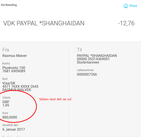Hvis din transaktion er gået igennem, som man kunne forvente, vil beløbene nemlig stå til både udenlandsk valuta på både eBay-/PayPal-kontoen samt på din danske bankkonto.