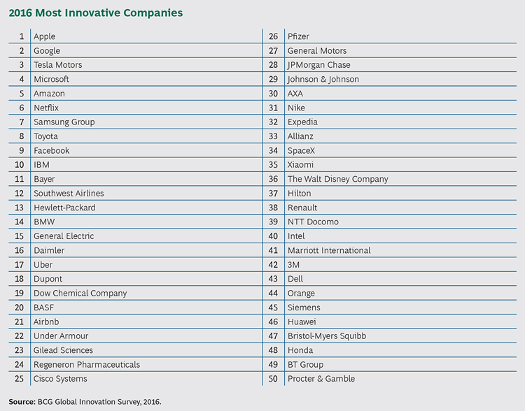 Det fremgår af i en ny rapport om de mest innovative virksomheder i 2016 fra Boston Consulting Group.