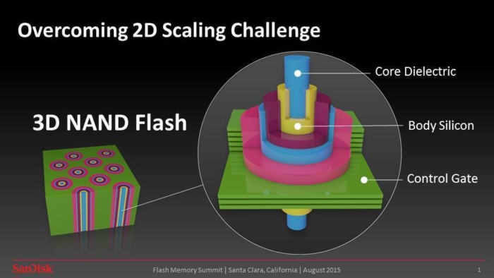 Den nye chip stacker 64 lag oven på hinanden, hvilket gør det muligt at lagre tre databit i hver celle. Det er en væsentligt forøgelse i forhold til den gængse standard, som i dag er to databit i hver celle på processoren.