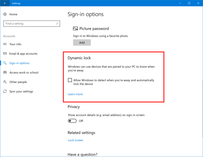 Blandt andet har systemet fået udvidet den nye dynamiske låsefunktion. Funktionen blev introduceret tidligere på måneden i et tidligere beta-build, og fungerer ved at din computer registrerer, når du forlader den og efterfølgende automatisk låses.