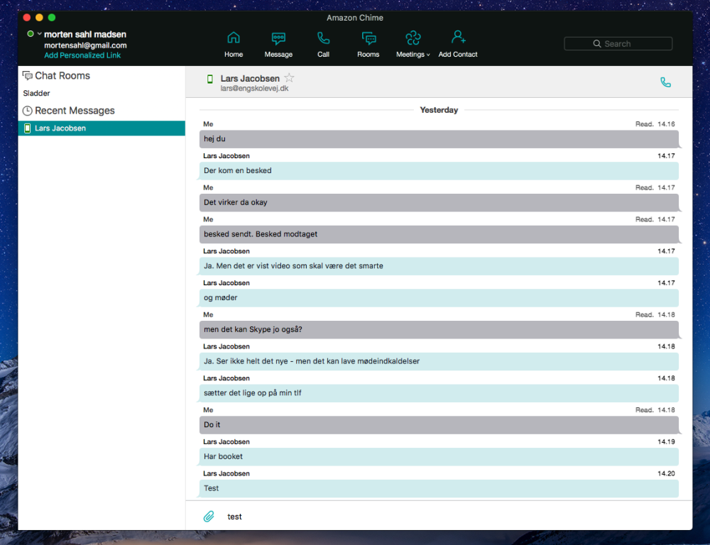 Omvendt fungerer Chimes funktioner som lovet. Selve chat-elementet fungerer som i kommunikationstjenesten Slack, hvor du enten kan skrive direkte til enkeltpersoner eller oprette grupper/teams med udvalgte deltagere.