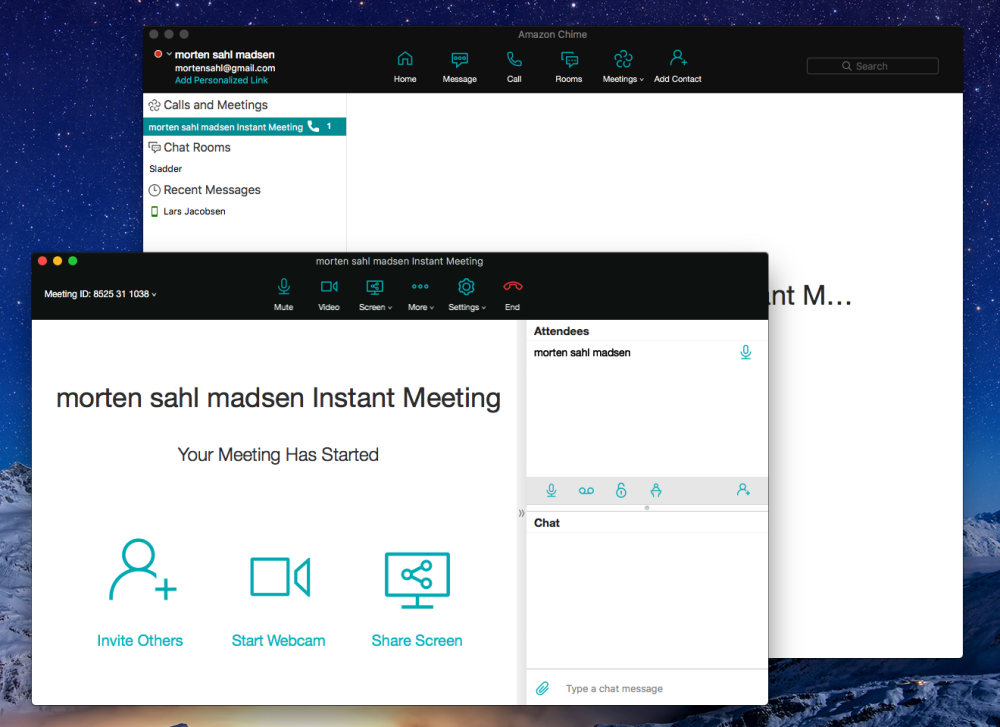 Amazon Chime er en cloud-tjeneste med dertil hørende desktop, mobil og web-apps på iOS, MacOS, Android og Windows.