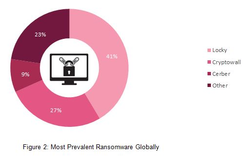 Check Points globale data viser, at Locky var den mest aktive ransomware-familie, da den stod bag 41 procent af de registrerede ransomware-angreb i andet halvår 2016.